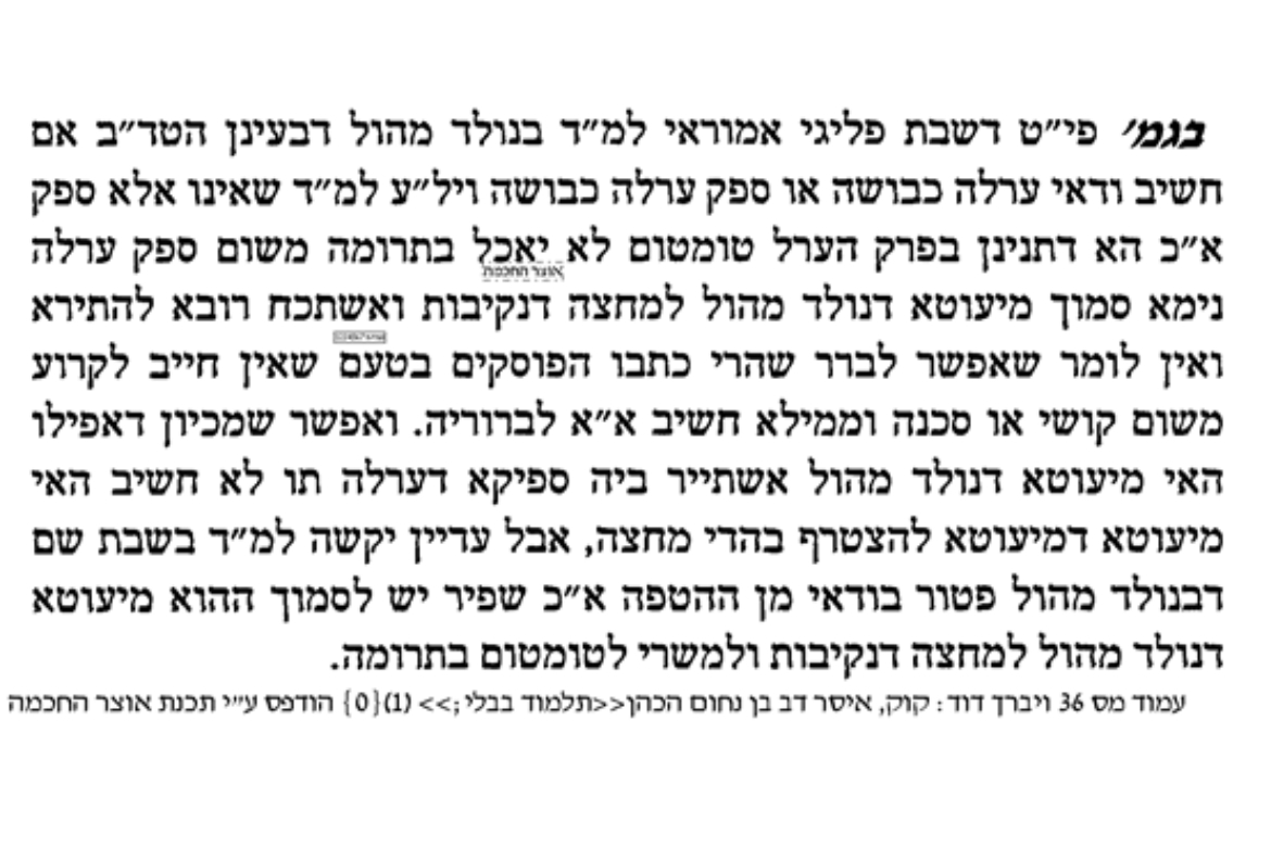 אכן נעמד רבינו שליט”א, והקשה אהא דתניא ביבמות (עב ע”א) דטומטום שמיום השמיני והלאה אינו אוכל בתרומה שמא ערל הוא, דלכאו’ כיון דמיום לידתו עד יום השמיני שפיר אכל בתרומה [דליכא שם ערלות כל זמן דלא מטי חיובא דיום השמיני], א”כ נימא דיאכל מיום השמיני על חזקת אוכל שהיתה לו כל ז”י הראשונים. [ואמר רבינו שליט”א בענוות קדשו שהגרי”ש צחק מן השאלה]. וביאר רבינו שליט”א, כי אכן אם השאלה היתה אם הוא “מהול או לא מהול” בזה שפיר היה מקום לומר דחזקת היתר שהיתה לו כל ז”י הראשו’ הגם שלא היה מהול, תכריע את הכף לקולא, אכן הספק הוא האם הוא “זכר או נקיבה”, וספיקא דא נולד מיד עם לידתו ולא נתחדש ביום הח’.